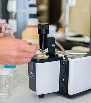 Infraestrutura de ponta: equipamentos moder-nos no Instituto de Química da Unicamp, incluindo ATR para análises rápidas sem preparo de amostra;