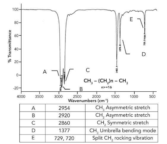 730 cm⁻¹ (absorção de flexão fora do plano do CH₂).